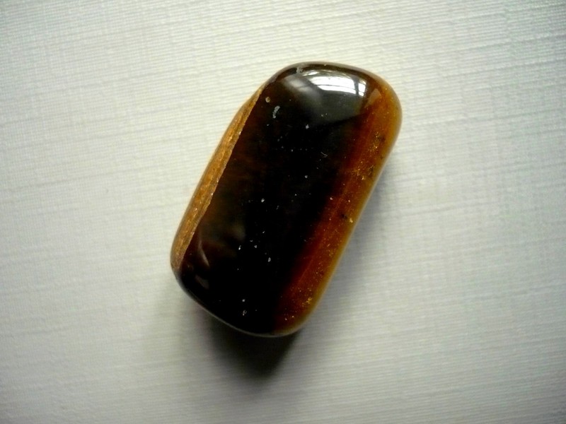 Tromlovaný kámen - tygří oko. Rozměry 28 x 16 x 15 mm. Původ JAR.