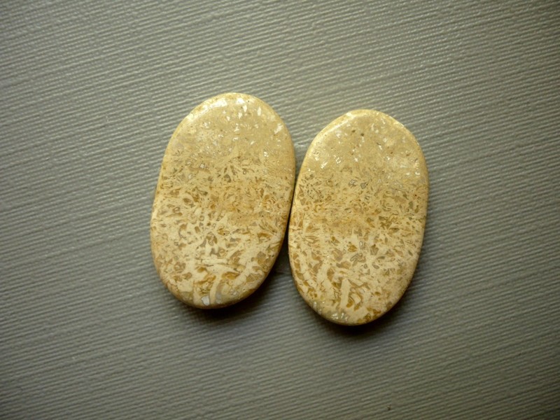 Dva kabošony do páru - fosilní korál , top kvalita. Rozměr jednoho kusu 20 x 12 x 4 mm. Původ Indonézie. Vhodné pro cínování, obšívání... Ze spodní strany je plochý.