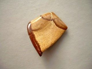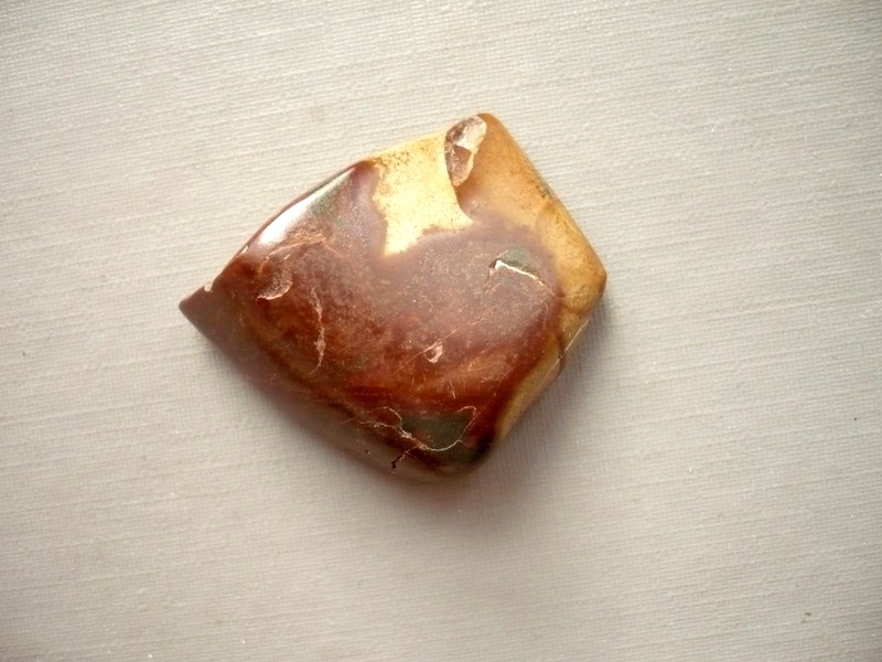 Tromlovaný kámen - porcelanit. Rozměry cca 27 x 22 x 10 mm. Původ ČR - Medlovický lom.