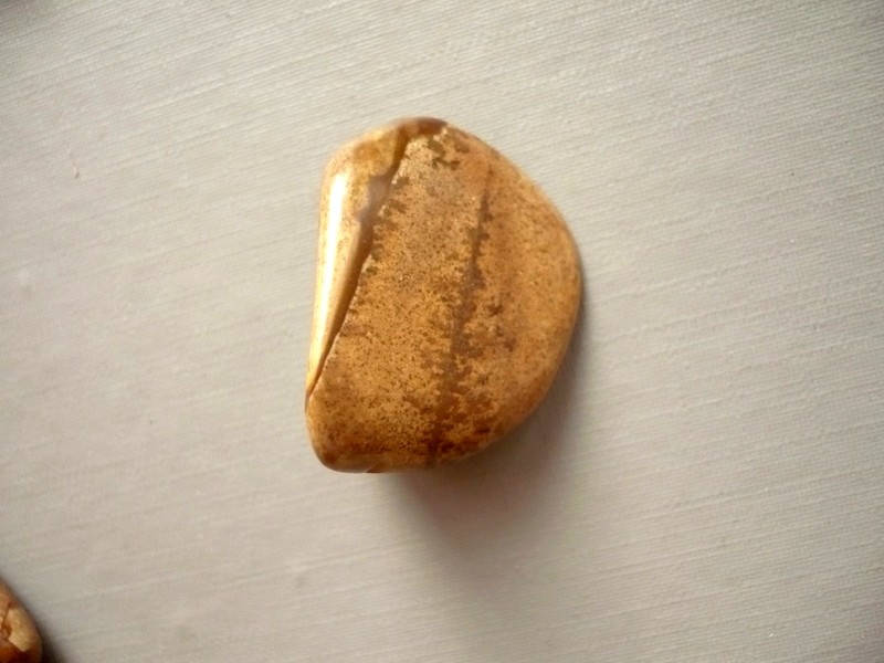 Tromlovaný kámen - porcelanit. Rozměry cca 27 x 21 x 15 mm. Původ ČR - Medlovický lom.
