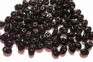 Rokajlové korálky české výroby - dvoudírkový rokajl = twin Preciosa Jablonex. Rozměry 5 x 3,5 x 2,5 mm. Barva černá. Cena za 10 gramů (cca 180 ks). T18