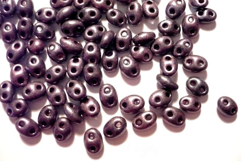 Rokajlové korálky české výroby - dvoudírkový rokajl = twin Preciosa Jablonex. Rozměry 5 x 3,5 x 2,5 mm. Barva fialový pokov. Cena za 10 gramů (cca 180 ks). T7