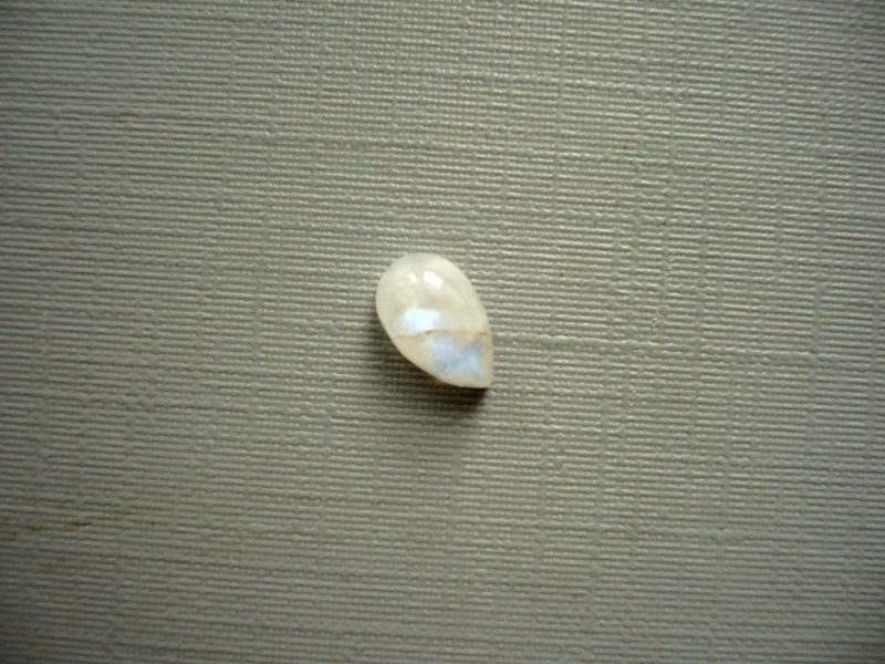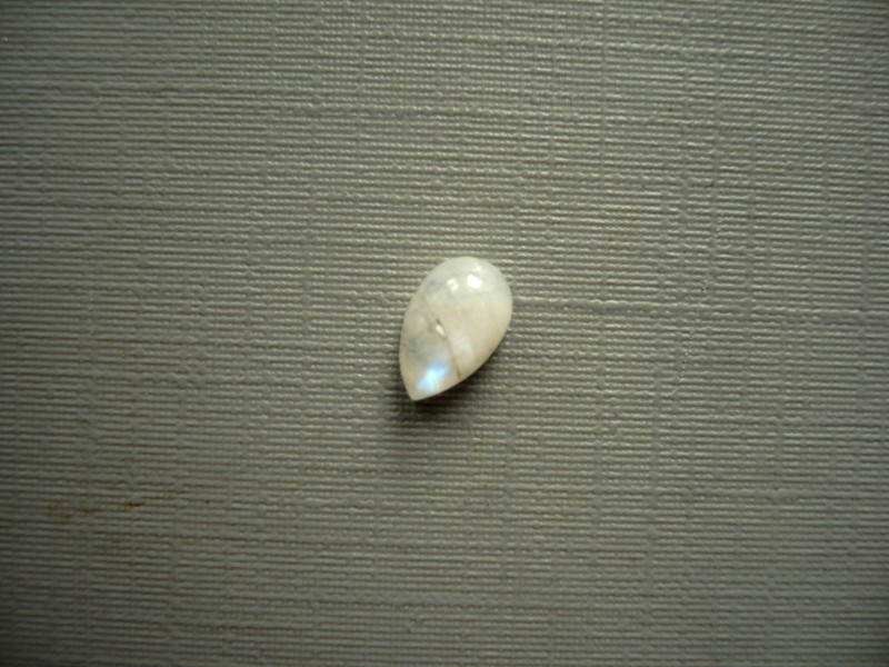 Kabošon měsíčního kamene (měsíček). Rozměry 8 x 5 x 4 mm. Vhodné pro cínování, obšívání... Ze spodní strany je plochý. Je mléčně bílý s výraznou modrou adularescencí. Jsou výběrové a moc pěkné.
