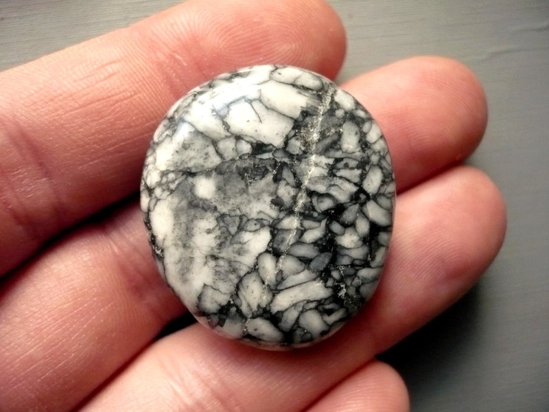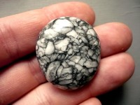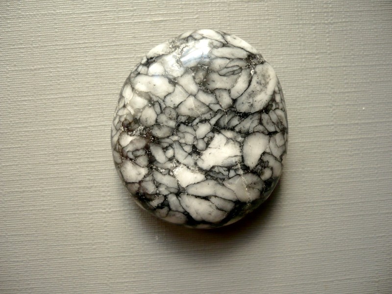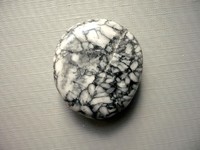 Tromlovaná placka - pinolit. Říká se mu také borovicový kámen. Je to směs dolomitu, magnezitu a grafitu. Rozměry 33 x 29 x 10 mm. Původ Rakousko. Kupujete vyfocený kousek.