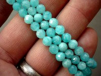 Vrtané korálky - fasetovaný amazonit. Průměr 5 mm. Cena za 10 kusů. V nabídce jsou také korálky amazonitu ve velikosti 6 mm, 8 mm, zlomky, placky a troml. kameny. Původ Rusko.