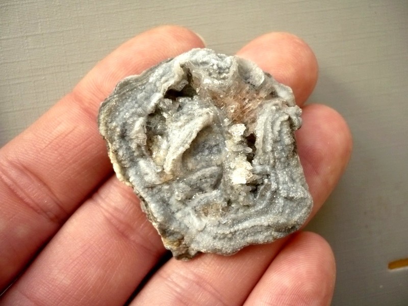 Hadí achát - chalcedonová růže. Minerál obsahuje krásné třpytivé krystaly a drůzy křemene. Rozměry 44 x 37 x 10 mm. Kupujete vyfocený kousek. Mají plochou zadní stranu.