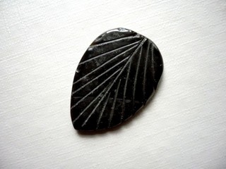 Kabošon onyxu, lístek s žilkováním. Rozměry 27 x 19 x 3 mm. Původ Brazílie. Vhodné pro cínování, obšívání... Kupujete tento konkrétní kus.