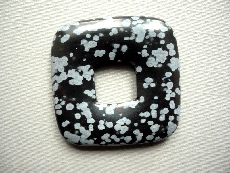 Obsidián vločkový, donut k dalšímu tvoření, tloušťka 0,5 mm. Rozměr 3,5 x 3,5 cm.