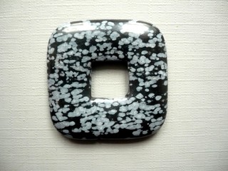 Obsidián vločkový, donut k dalšímu tvoření, tloušťka 0,5 mm. Rozměr 3,5 x 3,5 cm.