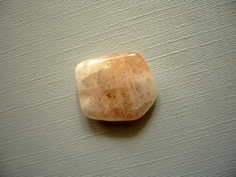 Tromlovaný kámen - sluneční kámen (heliolit). Rozměry 19 x 15 x 5 mm. Naleziště Tanzánie.