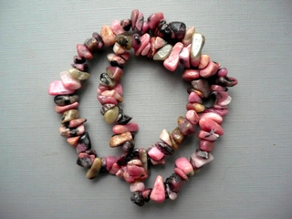 Minerální zlomky - rodonit AA v délce 20 cm, navlečeno na šňůře. Každý zlomek má svou originální kresbu. 421030