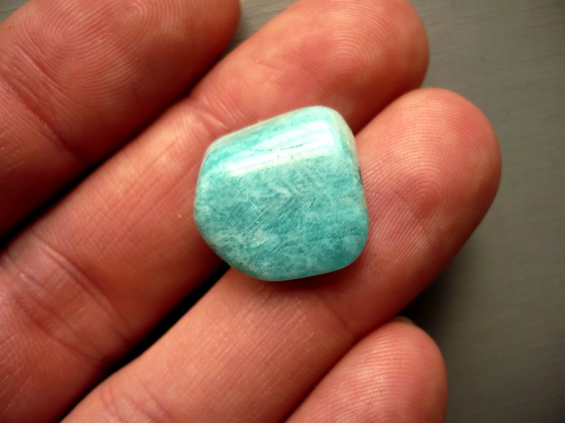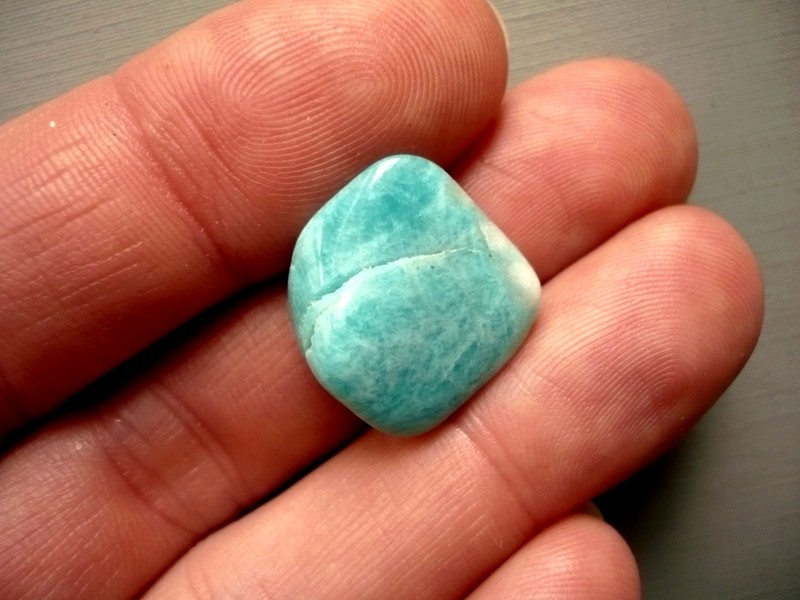 Tromlovaný kámen - amazonit tmavý. Rozměry 17 x 17 x 7 mm. Původ Namíbie. Amazonit - patří mezi živce.