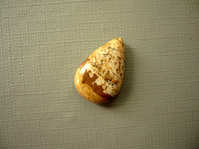 Vrtaná kapka z jaspisu obrázkového. Rozměry 18 x 12 x 5 mm.
