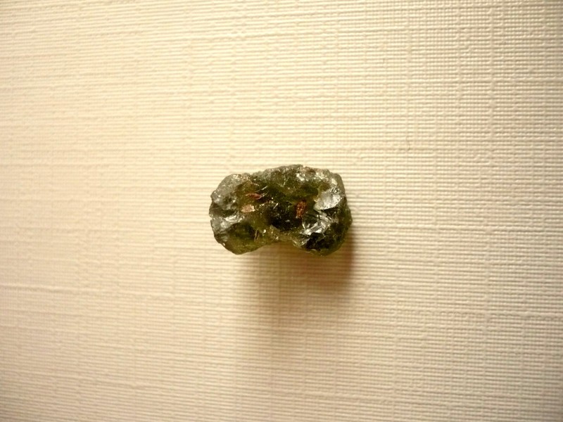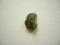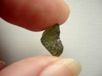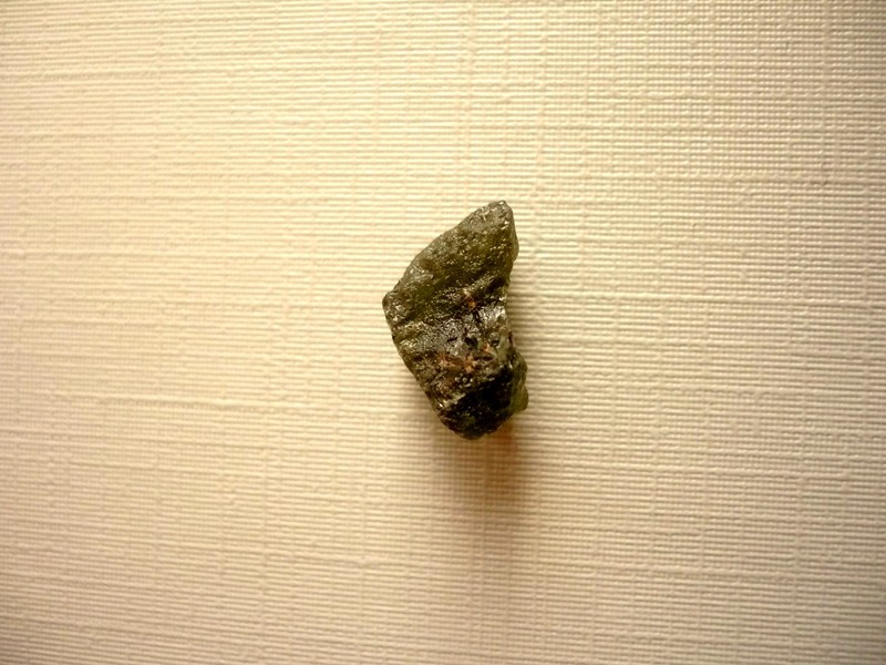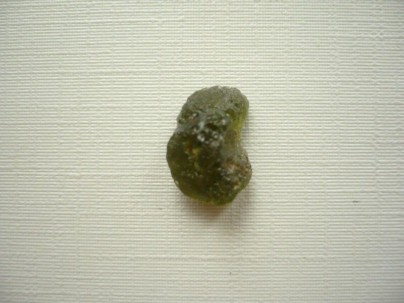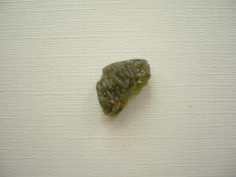 Šperkový kámen - vltavín (moldavit). Váha 0,93 g, rozměry 14 x 9 x 8 mm. Původ Jižní Čechy, různé lokality. Vltavíny - používaly se odedávna jako amulety a talismany, nosily se pro štěstí a plodnost.