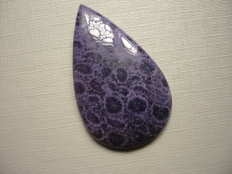 Velký kabošon - fosilní korál fialový A++++, top kvalita. Rozměry 40 x 24 x 5 mm. Původ Indonézie. Vhodné pro cínování, obšívání... Ze spodní strany je plochý. Je dobarvený.