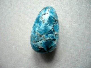 Tromlovaný kámen XL - modrý apatit, rozměry 36 x 20 x 19 mm. Jsou výběrové a moc pěkné. Původ Brazílie.