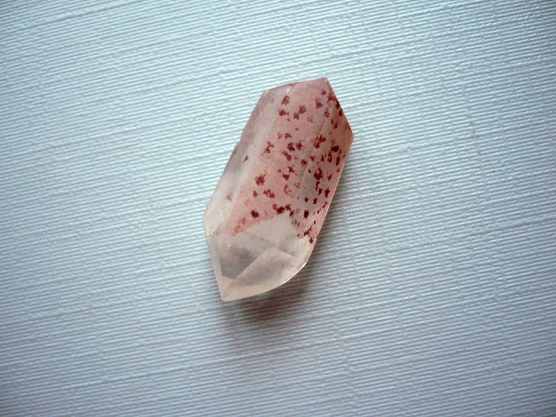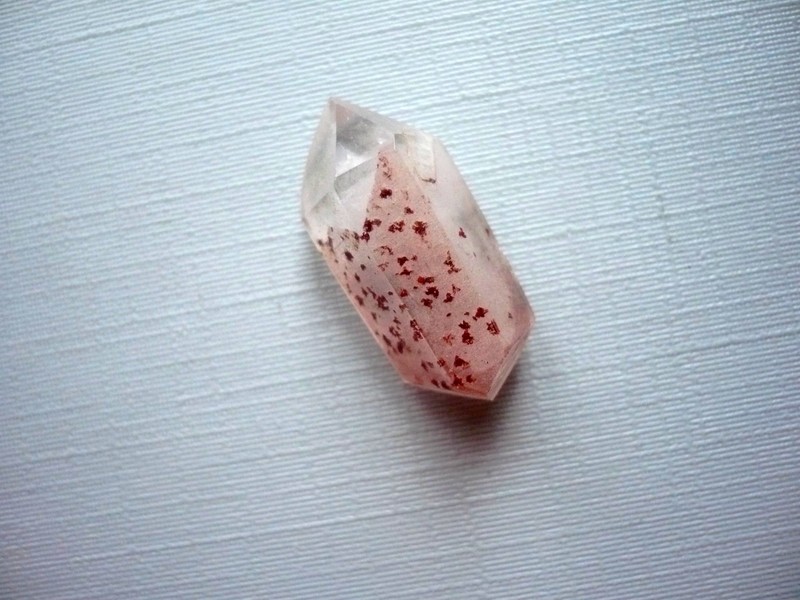 Špice z křišťálu s hematitem. Rozměry 23 x 11 x 10 mm. Původ Brazílie.