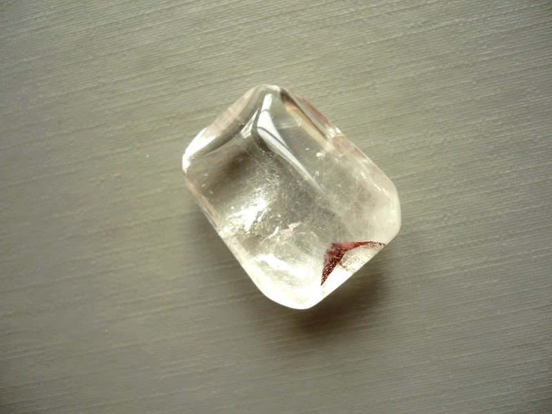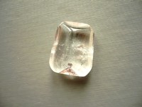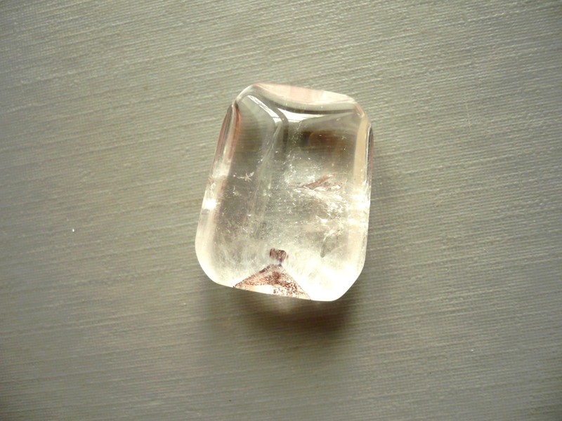 Nevrtaný kámen křišťálu s inkluzemi hematitu. Červená barva je způsobena příměsí hematitu. Rozměry 22 x 17 x 11 mm.