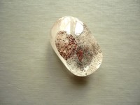Nevrtaný kámen křišťálu s inkluzemi hematitu. Červená barva je způsobena příměsí hematitu. Rozměry 27 x 18 x 14 mm.