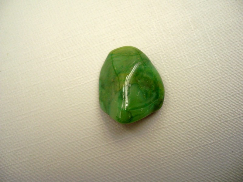 Tromlovaný kámen - verdit. Říká se mu africký jadeit či africké zelené zlato, kameny mají zvláštní lesk. Rozměry 22 x 19 x 10 mm. Země původu Namíbie.