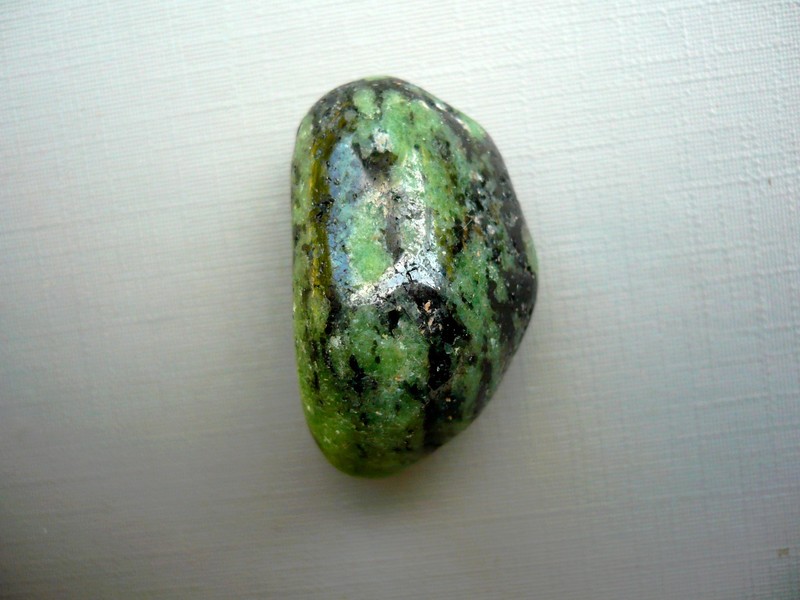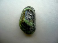 Tromlovaný kámen - rubín v zoisitu. Rozměry 31 x 19 x 19 mm. Původ Tanzánie.