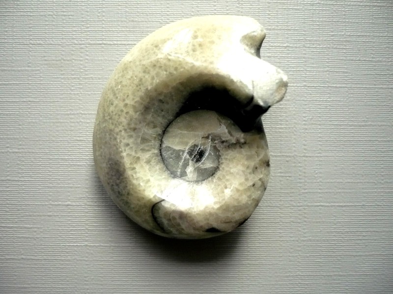 Goniatit - prvohorní fosílie, předchůdce amonitů. Je leštěný z obou stran, původ Maroko. Rozměry 41 x 32 x 17 mm.
