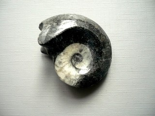 Goniatit - prvohorní fosílie, předchůdce amonitů. Je leštěný z obou stran, původ Maroko. Rozměry 43 x 34 x 19 mm.