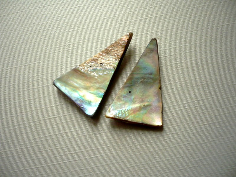 Nevrtaný tvar - kabošony z paua mušle - do páru. Rozměry 31 x 20 x 4 mm. Vhodné pro cínování, obšívání... Původ Nový Zéland.