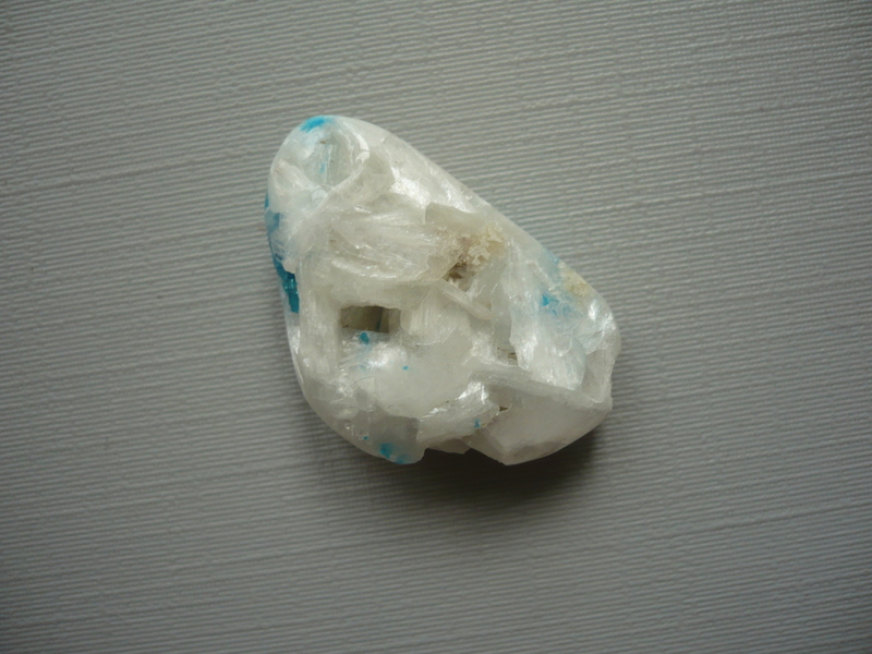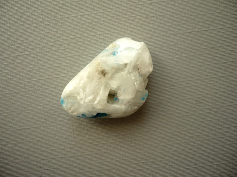 Cavansit ve skolecitu. Rozměr 27 x 18 x 9 mm. Vhodné do cínu, pro wire-wrapping.. Původ Indie. Bílý je skolecit, modré krystaly jsou cavansit.