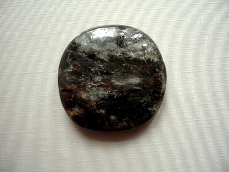 Tromlovaná placka - astrofylit. Rozměr 40 x 40 x 9 mm. Kupujete vyfocený kousek. Leštěné. Vhodné pro cínování, obšívání.. Obsahuje krásné modré vrostlice. Astrofylit - název je odvozen z řeckého slova astron - hvězda a phyllon - list, pro jeho vnitřní lesk a slídové štěpení. Astrofylit je velmi vzácný, nachází se pouze na několika málo a vzdálených nalezištích na světě – Kanada, USA, Grónsko, Norsko a Rusko.