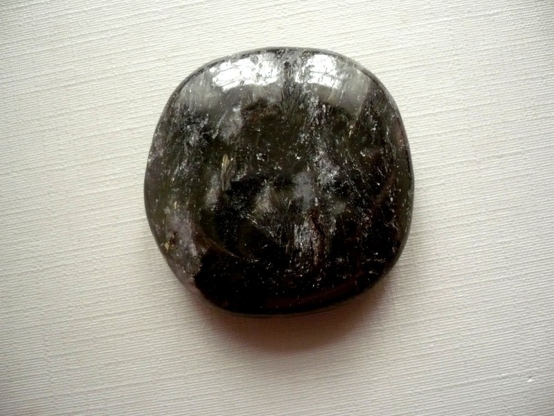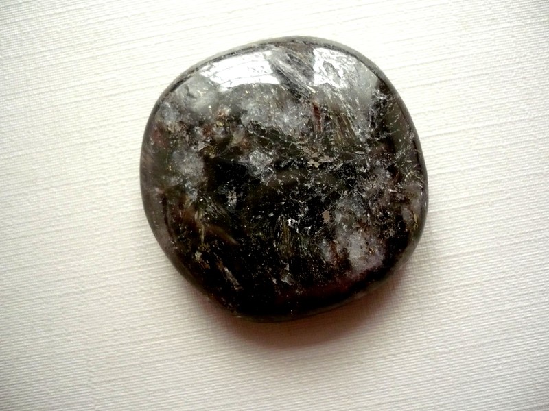 Tromlovaná placka - astrofylit. Rozměr 37 x 37 x 10 mm. Kupujete vyfocený kousek. Leštěné. Vhodné pro cínování, obšívání.. Obsahuje krásné modré vrostlice. Astrofylit - název je odvozen z řeckého slova astron - hvězda a phyllon - list, pro jeho vnitřní lesk a slídové štěpení. Astrofylit je velmi vzácný, nachází se pouze na několika málo a vzdálených nalezištích na světě – Kanada, USA, Grónsko, Norsko a Rusko.