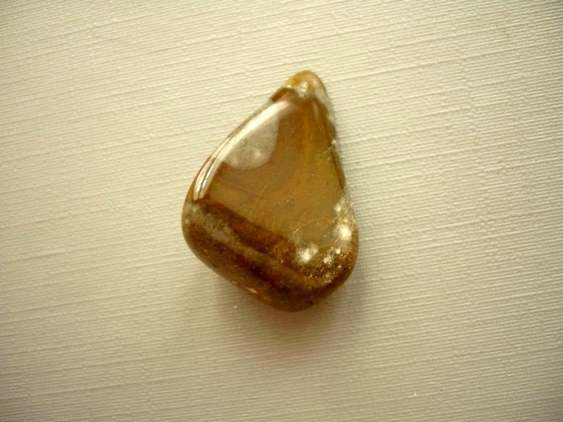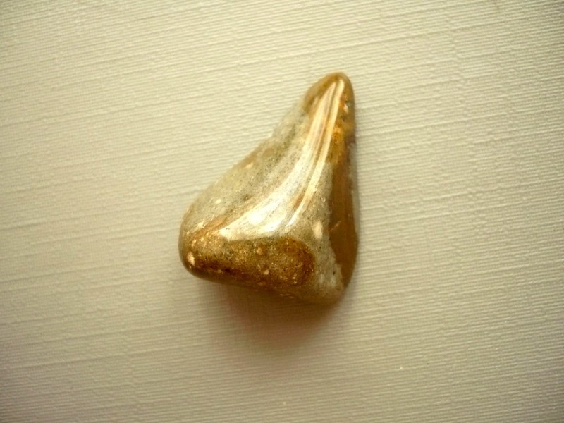 Tromlovaný kámen - limnokvarcit. Rozměry 27 x 19 x 13 mm. Původ Slovensko. Je tvořen opály a křemeny, hnědé odstíny mají díky železu.