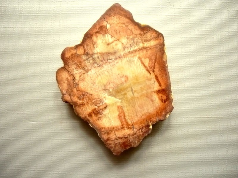 Plátek - zkamenělé dřevo (araukarit). Rozměry 49 x 38 x 8 mm. Jde o prokřemenělé třetihorní dřevo, tzv. araukarit, mají krásné hnědo červené barvy, materiál je pevný, vhodný do šperků. Plátek je z obou stran broušený, leštěna je jedna strana. Kupujete tento konkrétní kus. Původ Madagaskar.