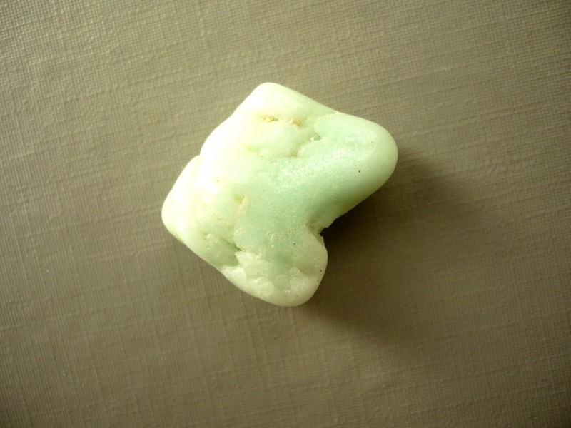 Tromlovaný kámen - chrysopras zelený. Rozměry 22 x 18 x 13 mm. Původ Brazílie. Je to zelená odrůda chalcedonu. Tvrdost 7.