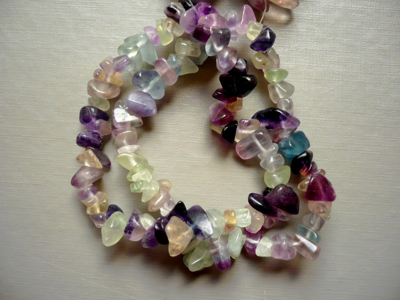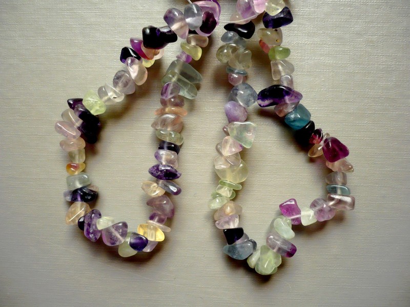 Minerální zlomky - fluorit v délce 18-20 cm, navlečeno na pružence. Každý zlomek má svou originální kresbu.