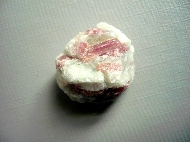 Rubelitové krystaly pocházející z brazilského státu Minas Geraís. Krystaly prorůstají křemennou hmotou, mají nádhernou sytě růžovou barvu.