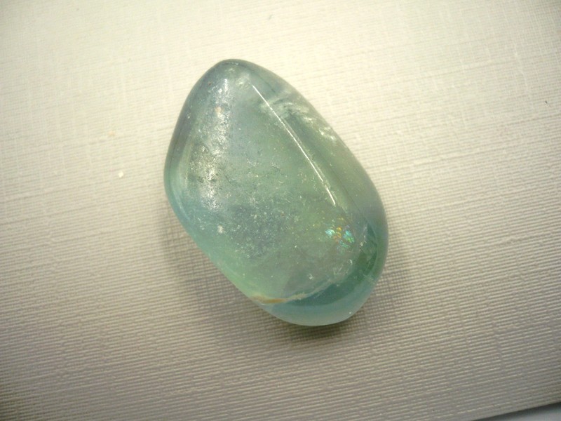 Tromlovaný kámen - fluorit duhový. Rozměry 31 x 20 x 11 mm. Původ Čína.
