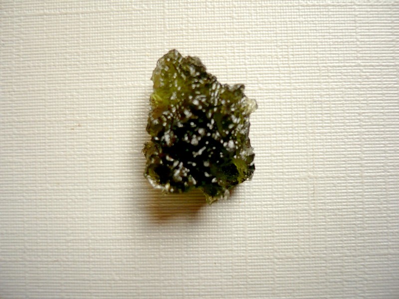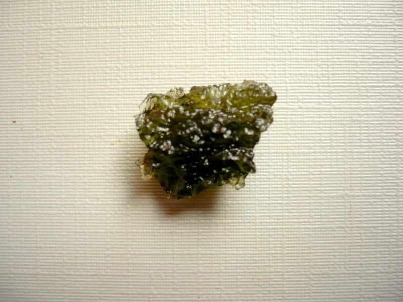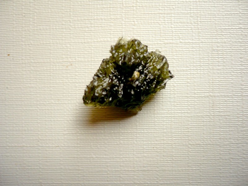 Šperkový kámen - vltavín (moldavit). Váha 1,49 g, rozměry 17 x 13 x 8 mm. Původ Jižní Čechy, různé lokality. Vltavíny - používaly se odedávna jako amulety a talismany, nosily se pro štěstí a plodnost.