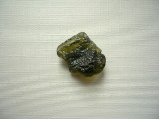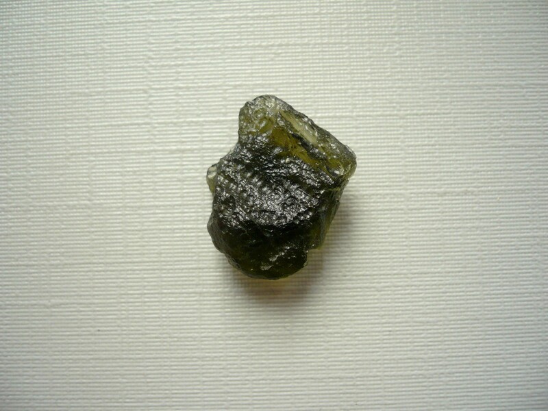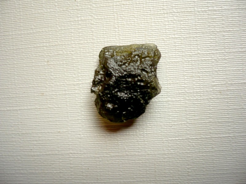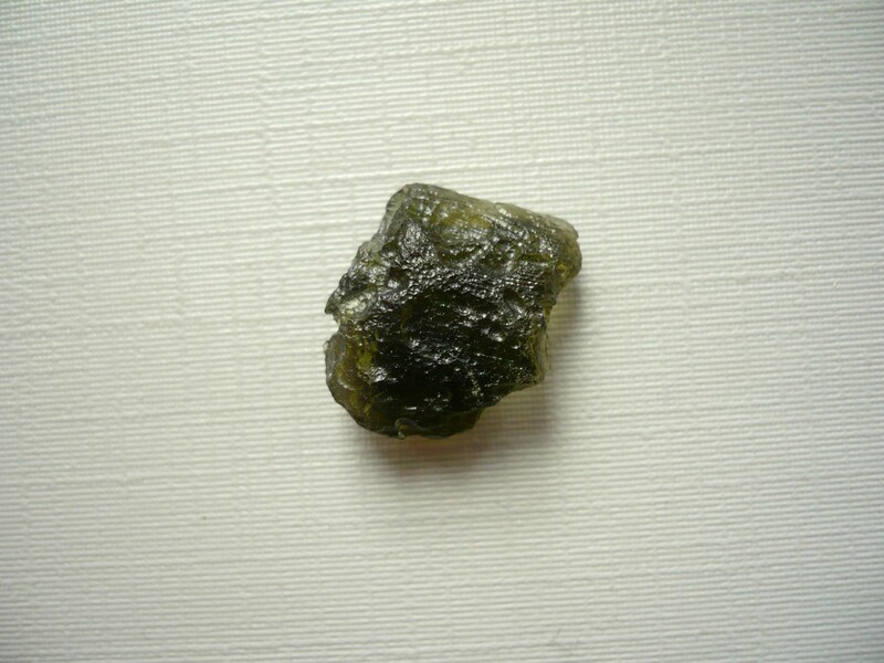 Šperkový kámen - vltavín (moldavit). Váha 1,37 g, rozměry 17 x 13 x 6 mm. Původ Jižní Čechy, různé lokality. Vltavíny - používaly se odedávna jako amulety a talismany, nosily se pro štěstí a plodnost.