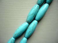 Vrtané válečky tyrkenitu. Rozměry 30 x 11 mm. Cena za 1 kus. Jde o rekonstruovaný tyrkys.
