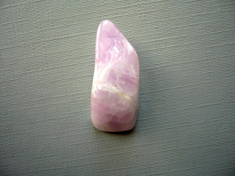 Kunzit tromlovaný (odrůda spodumenu). Původ Pákistán. Rozměry 27 x 10 x 10 mm. Kunzit - představuje nebe a nekonečno, je vhodný při psychických onemocněních, při problémech se srdcem, uklidňuje.