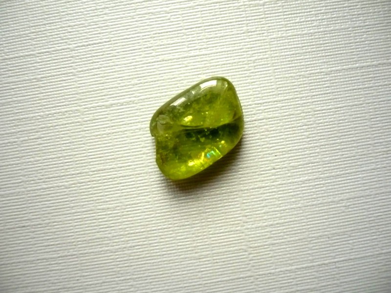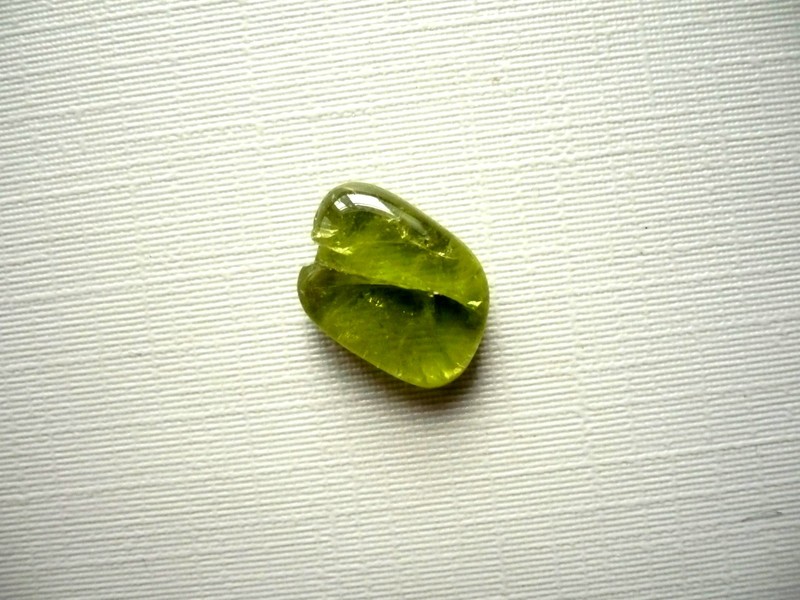 Tromlovaný kámen - olivín (peridot). Rozměry 13 x 9 x 1 mm. Původ Arizona. Kupujete vždy vyfocený kus.