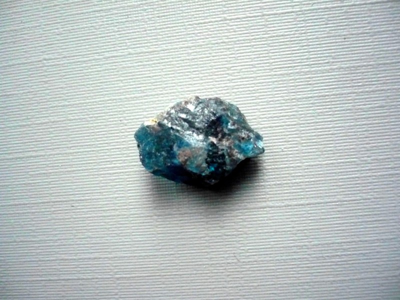 Surový kámen - modrý apatit. Rozměry 15 x 11 x 6 mm. Původ Madagaskar.