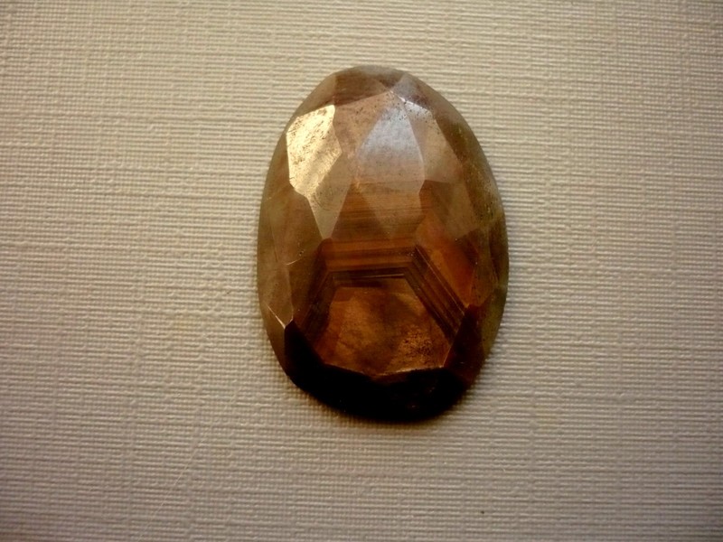 Kabošon - hnědý šedý safír (korund). Rozměry 27 x 19 x 4 mm. Vhodné pro cínování, obšívání... Mají hedvábný lesk (způsobují to inkluze rutilu). Ze spodní strany je plochý, je fasetovaný. Cena za tento konkrétní kus. Původ Afrika.