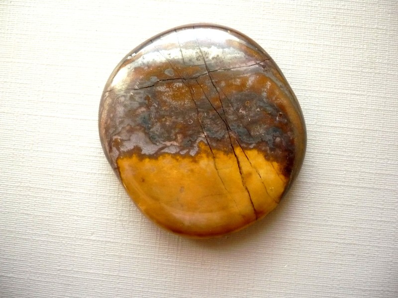 Tromlovaná placka - tygří kůže. Rozměry 37 x 34 x 7 mm. Kupujete vyfocený kousek. Leštěné. Vhodné pro cínování, obšívání..