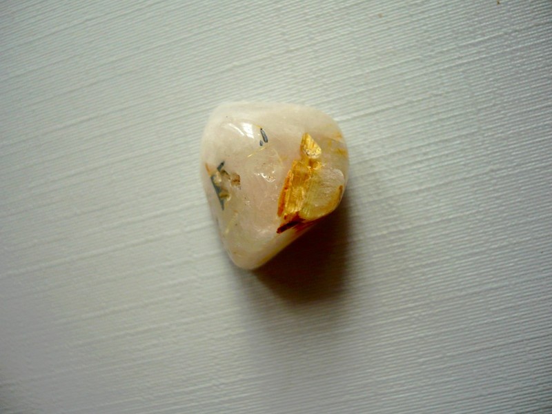 Tromlovaný kámen - sagenit - rutil v křišťálu. Rozměry 18 x 18 x 14 mm. Původ Brazílie.