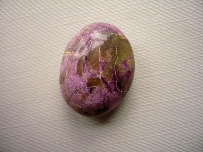 Tromlovaný kámen - fialový stichtit se zeleným serpentinitem. Rozměry 24 x 19 x 11 mm. Původ JAR, extra kvalita.