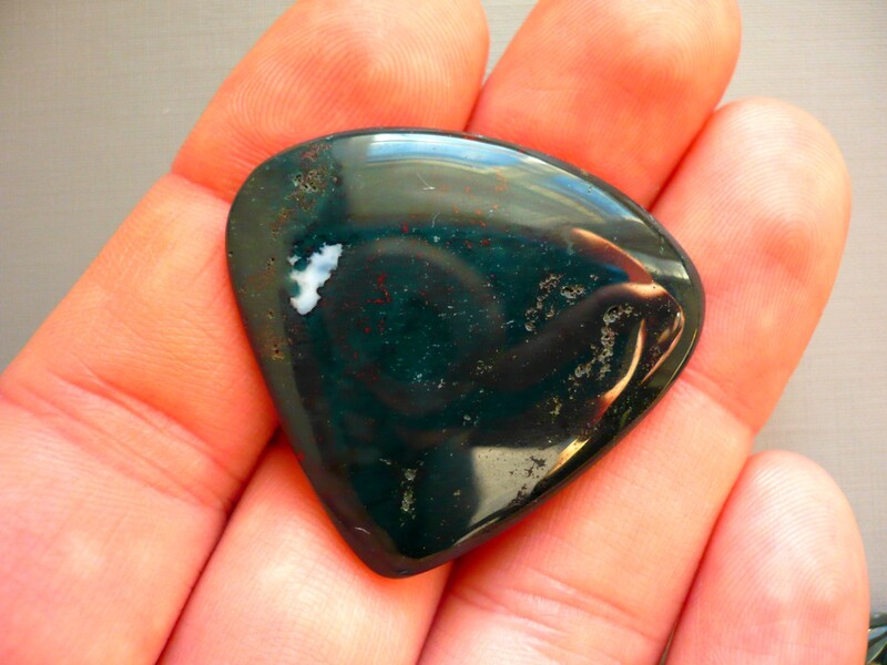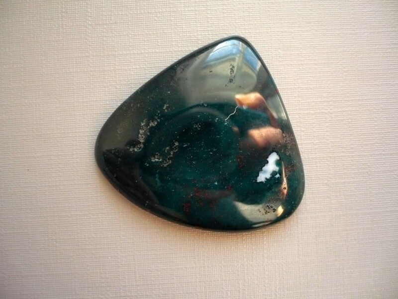 Kabošon heliotrop, top kvalita. Rozměry 38 x 35 x 5 mm. Vhodné pro cínování, obšívání... Ze spodní strany je plochý. Cena za tento konkrétní kus.