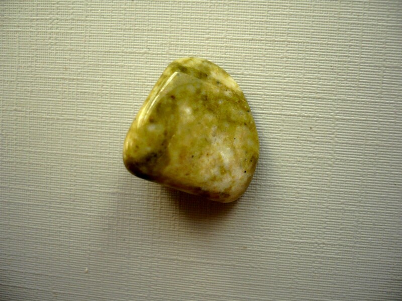 Tromlovaný kámen - epidot. Rozměry 20 x 20 x 11 mm. Je složen z epidotu, živce a křemene. Má moc pěknou sytě zelenou barvu.