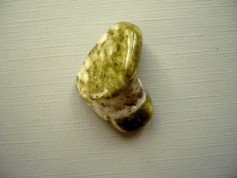 Tromlovaný kámen - epidot. Rozměry 28 x 19 x 13 mm. Je složen z epidotu, živce a křemene. Má moc pěknou sytě zelenou barvu.